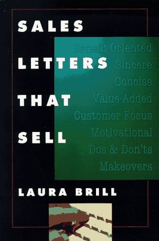Even some of the very best salespeople sometimes find that their powers of persuasion, which work well in person, fail to translate properly to the written word. Sales Letters That Sell, by business communication consultant Laura Brill, offers step-by-step instructions for solving that shortcoming by showing how to compose merchandising correspondence in a conversational tone that will "put prospects at ease, making them more comfortable--and more receptive to the pitch." Plenty of sample documents are included, as is an appendix detailing common grammar mistakes, techniques for improved proofreading, troublesome words, and useful facts.